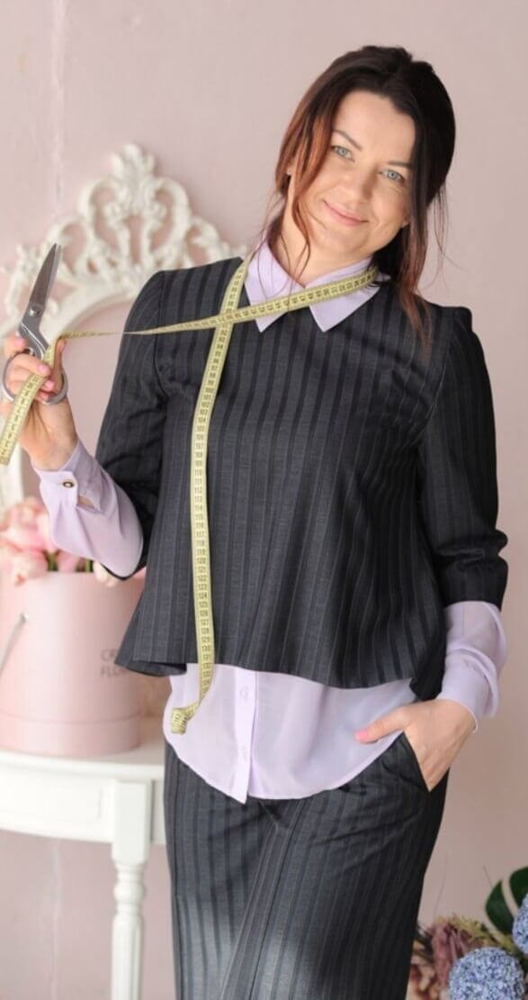 Александра пришла на курс в нашу школу с нулевыми знаниями по конструированию лекал: «О курсе по конструированию по итальянской методике G.Guarino и о самой Виттории я узнала случайно, от девушки, с которой познакомились на мастер-классе одной из школ шитья. Помню, как я удивилась и даже насторожилась после ее слов «по этой методике строят базовую выкройку за 15 мин.!». Ситуация сложилась таким образом, что я поступила на обучение онлайн. Скажу честно, мне было сложно, так как на тот момент я не умела конструировать, опыт пошива был только в простых изделиях, мне было сложно представить чертеж в объёме, ко всему этому у всех разное восприятие информации.»